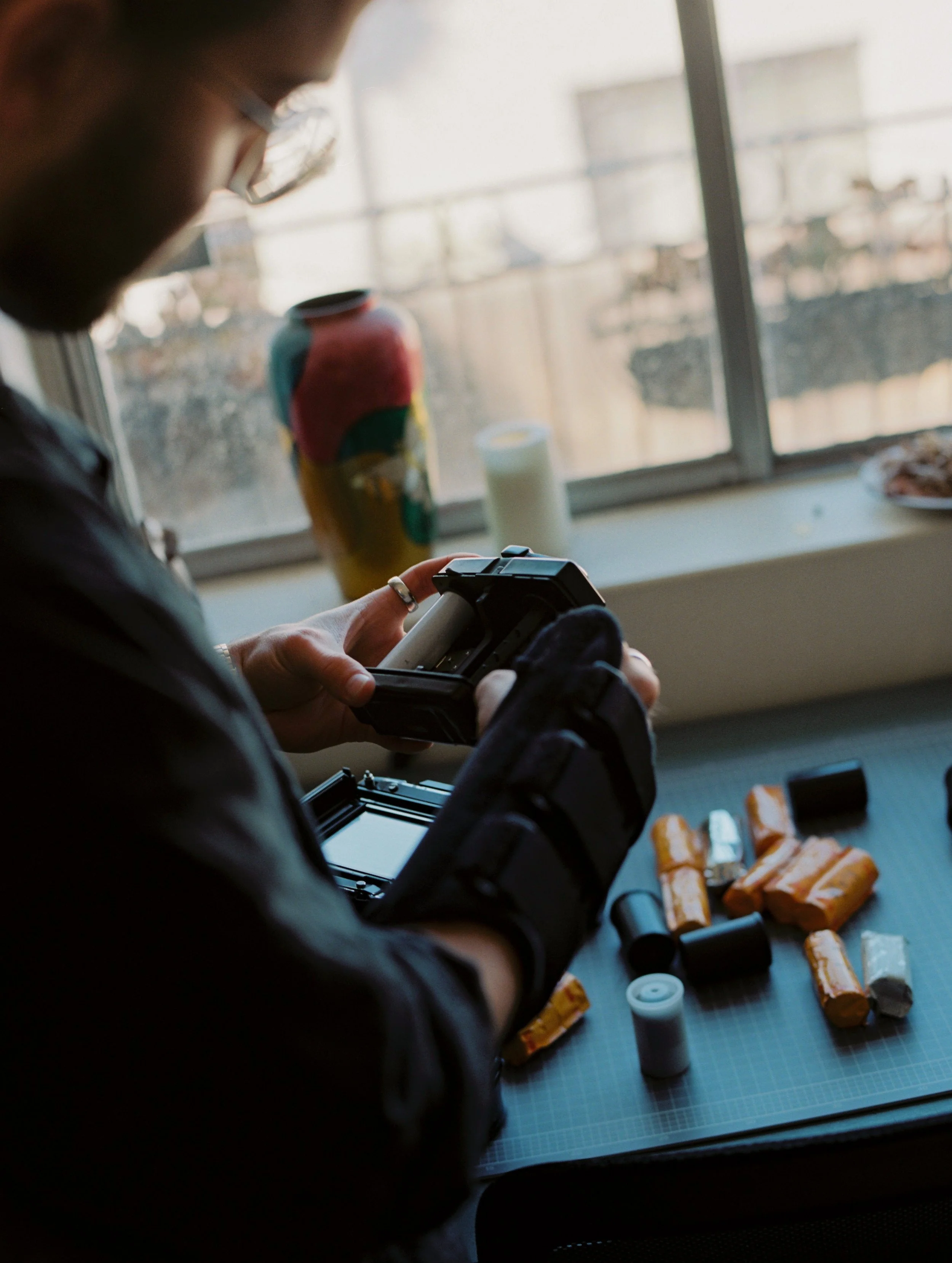 His primary photographic work seeks to embody a sense of stillness which fringes on the world of dreams. Being colourblind, he is often looking to portray colour in alternative ways which challenge standard perceptions and offer elements of surrealism. While his teaching practice seeks to reconnect students with traditional photo-making techniques.